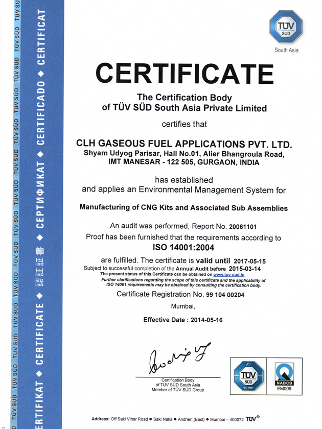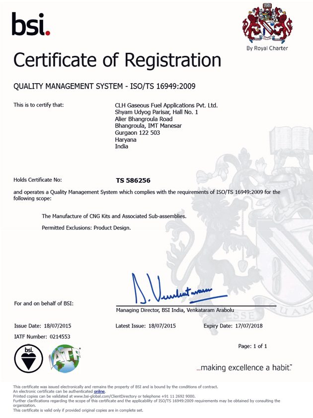 CLH has established all system in line with ISO/TS 16949: 2009 & ISO 14001: 2004 systems. Our quality systems are certified through elaborate audit by BSI & TUV SUD as confirming.